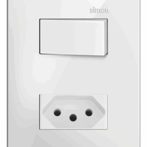 CONJUNTO 1 INTERRUPTOR SIMPLES 10A 250V + 1 TOMADA 2P+T PADRÃO BRASILEIRO 10A 250V – BRANCO – SIMON 20