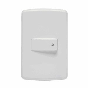 Pulsador Símbolo Campainha IRIEL. Design inovador, fácil de instalar e limpar, com superfície em extra brilho e toque suave. Disponível na cor branco. Corrente de 10A e tensão 250V. Produzido em material termorplástico de alta performance, com aditivo ant