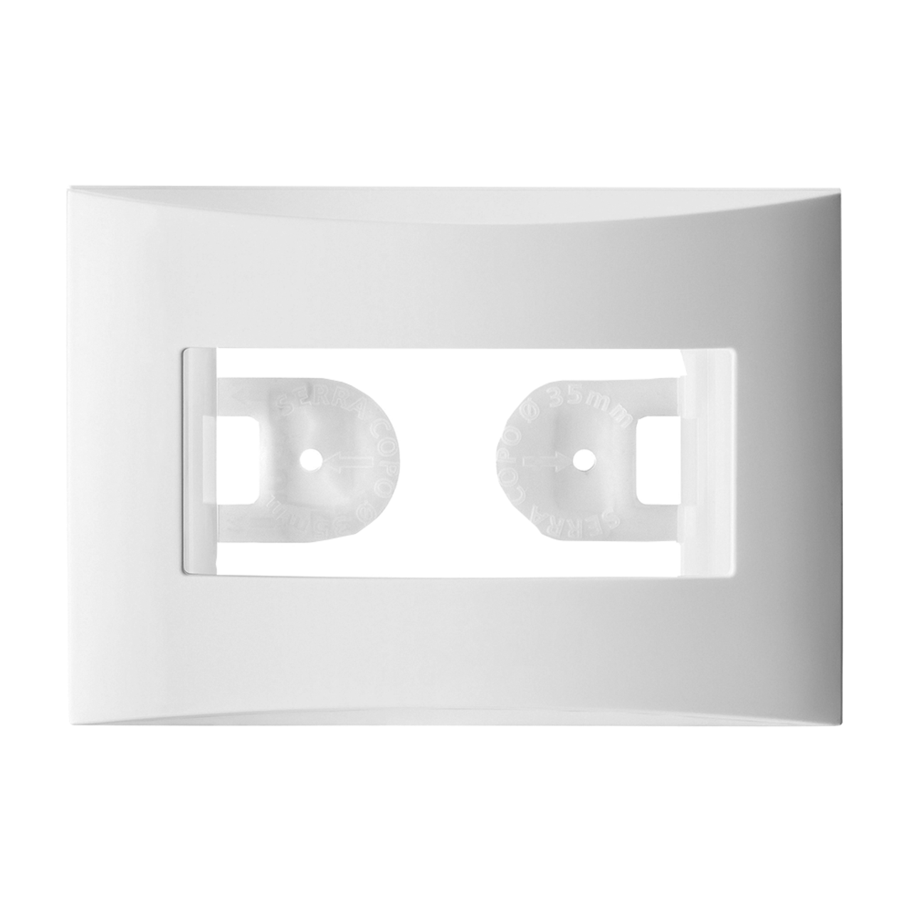 - Tipo: Placa com suporte para embutir em móveis, compatível com um módulo.
