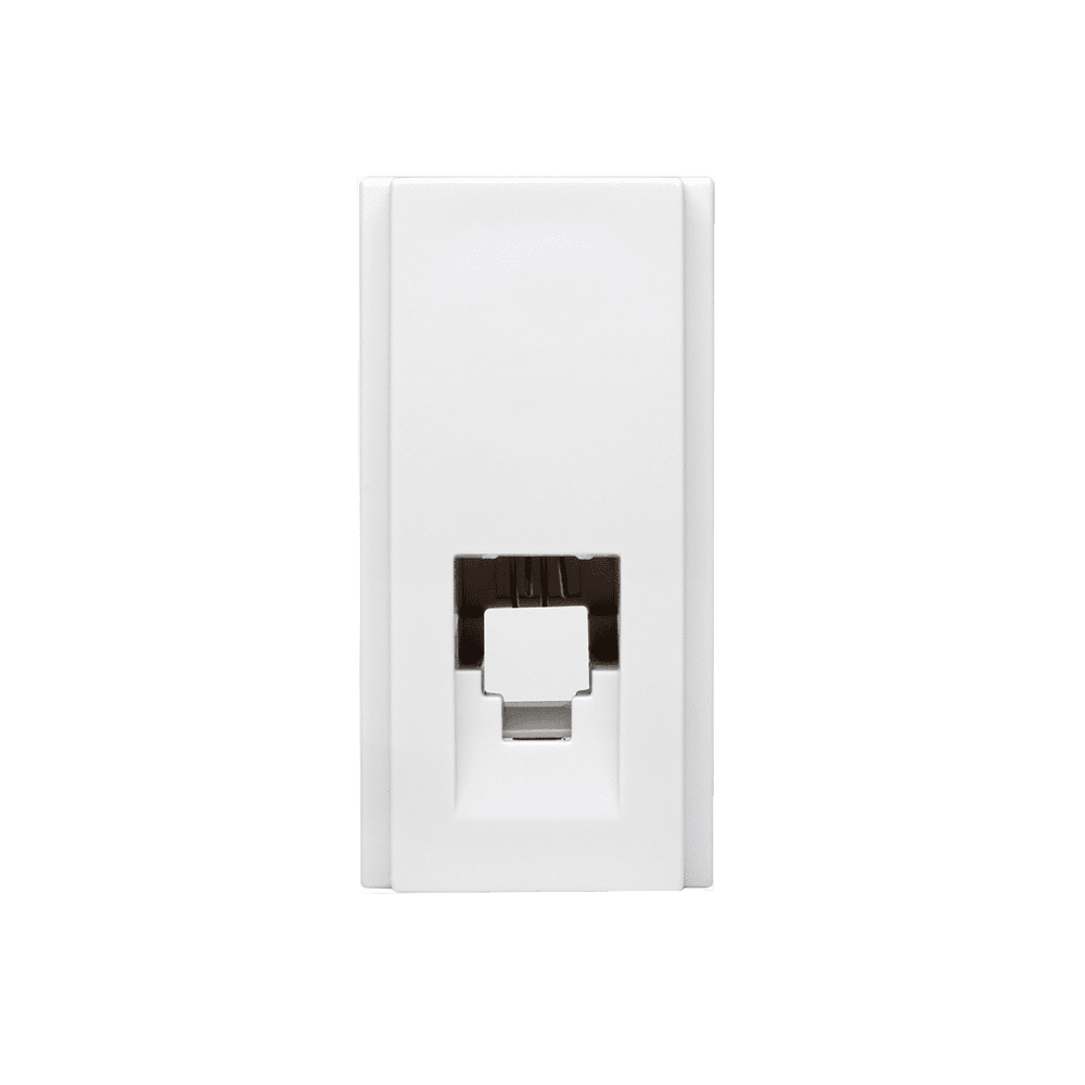 Com cor branca, cantos arredondados e design sem parafusos aparentes, a tomada RJ11 2 fios 4×2 eleva a estética de qualquer ambiente.