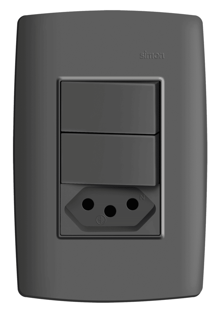 CONJUNTO 1 INTERRUPTOR SIMPLES 10A 250V + 1 INTERRUPTOR PARALELO 10A 250V + 1 TOMADA 2P+T PADRÃO BRASILEIRO 10A 250V – GRAFITE – SIMON 30