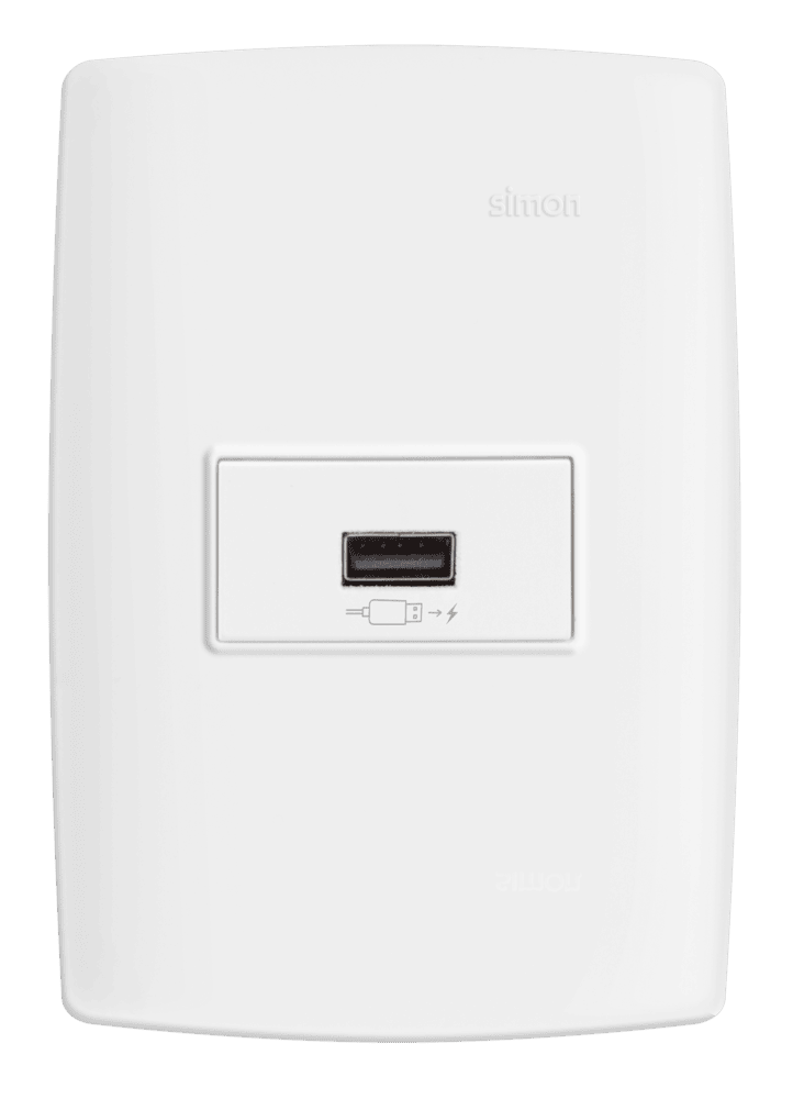 CONJUNTO CARREGADOR USB 2.1A TURBO CHARGE BIVOLT BRANCO C/PLACA+SUPORTE – SIMON 30