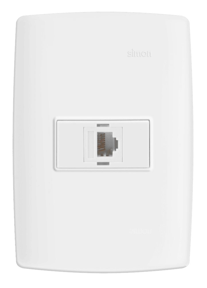 CONJUNTO TOMADA RJ45 CAT 5E BRANCO C/PLACA + SUPORTE – SIMON 30