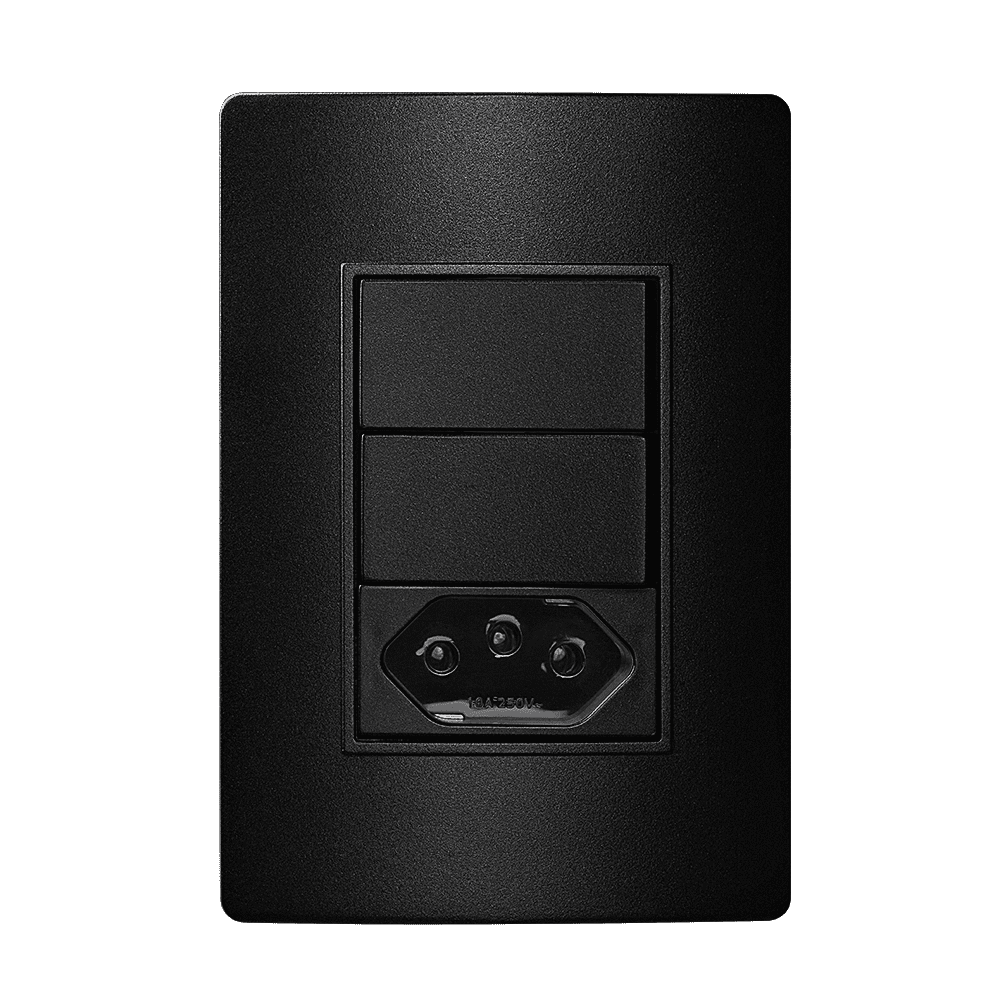 Conjunto Interruptor Simples + Interruptor Paralelo + Tomada 2P+T 10A Revitá Carbono Soprano